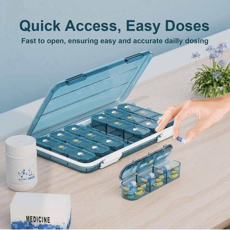 - Large Capacity and BPA-Free – This 7 day travel pill case provides ample space for daily medications, vitamins, or supplements. Designed for 3 times a day doses, it is perfect for help you plan a week's pill. Made from BPA-free materials for safe, reliable use