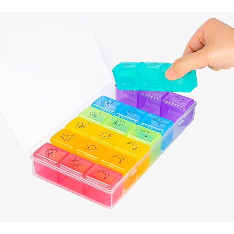 - 💊Large Capacity Rainbow Pill Box