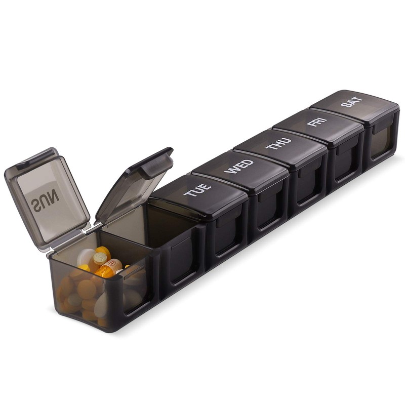 - Pill organizer stay organized - This pill organizer will help you take the right pills on the right day. Dispenser has 7 compartments, every daily box can hold up to 13 fish oils or 12 large vitamins.