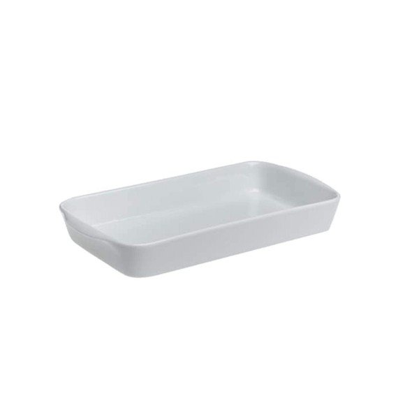 With its thin, even walls and shallow sides, this large 14-1/2-by-8-1/2-inch rectangular dish bakes a hearty entrée of bubbly chicken-stuffed shells or a large batch of cookie bars for dessert with the ideal heat conduction for a superbly executed recipe. An exquisite specimen of fine French pottery, this porcelain baker is simple in appearance with its milky white color, rounded corners, and curved handles yet durable due to its proprietary time-tested ingredients and quality construction. The 3-quart baker's pristine beauty and excellent heat retention make it a wonderful serving vessel that goes from oven to table, and its plain design is certain to blend with all dinnerware, from casual and modern to formal and vintage.
