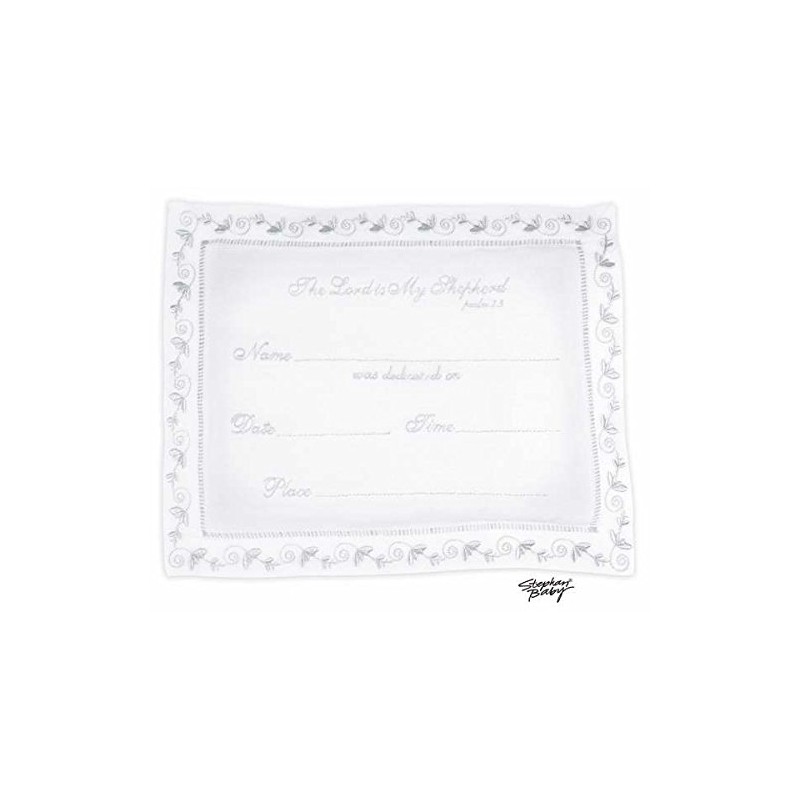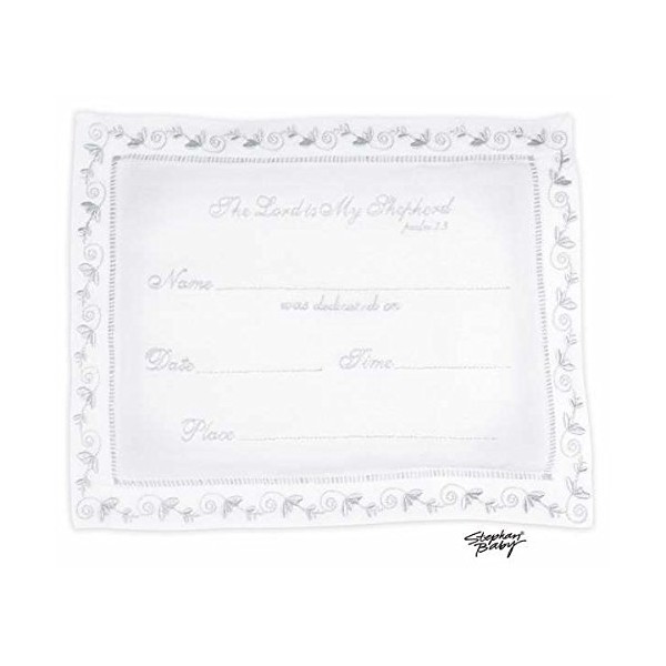 - Pillow is embroidered as follows: "The Lord is My Shepard - Psalm 23", Name, was dedicated on, date, time and place.