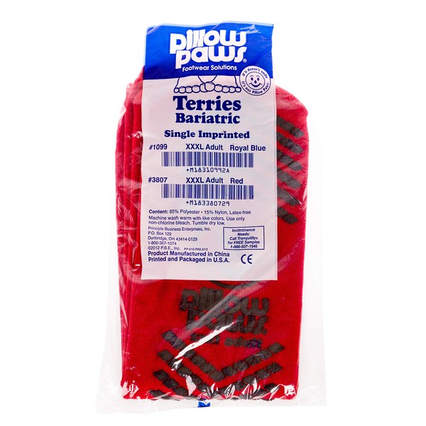 Pillow Paws Slip Resistant Socks 3XL Adult Extra Wide Red - 3 pairs