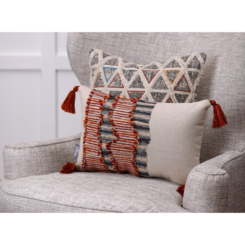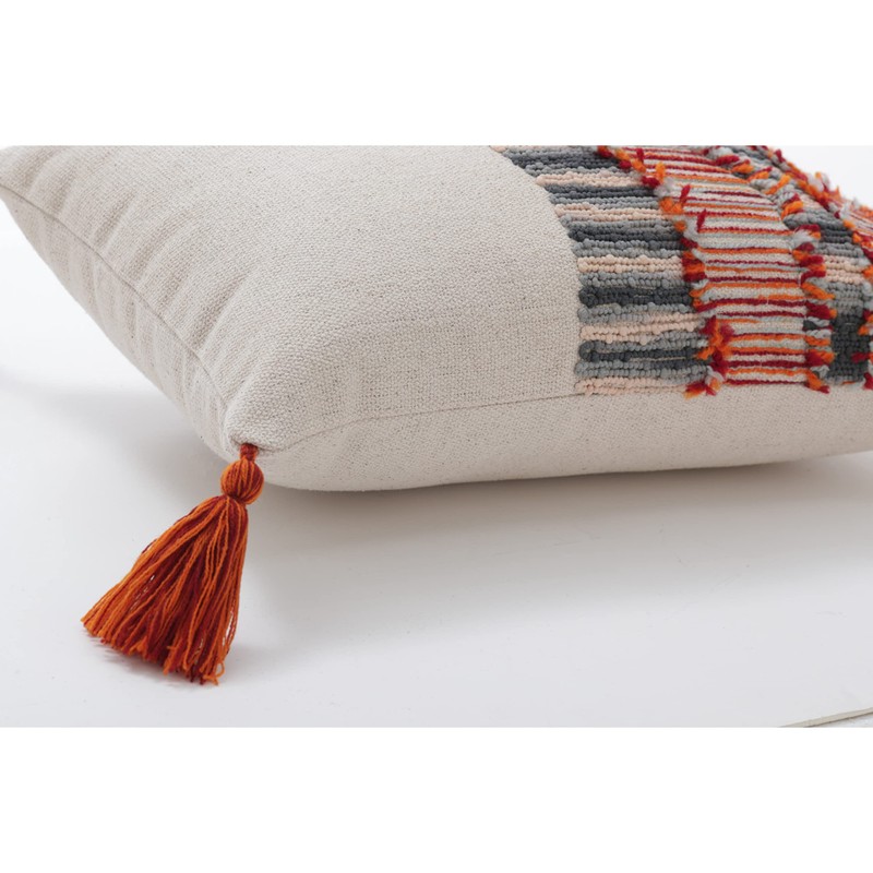 - Knife edge seam; sewn seam closure and commingled tassels on each corner