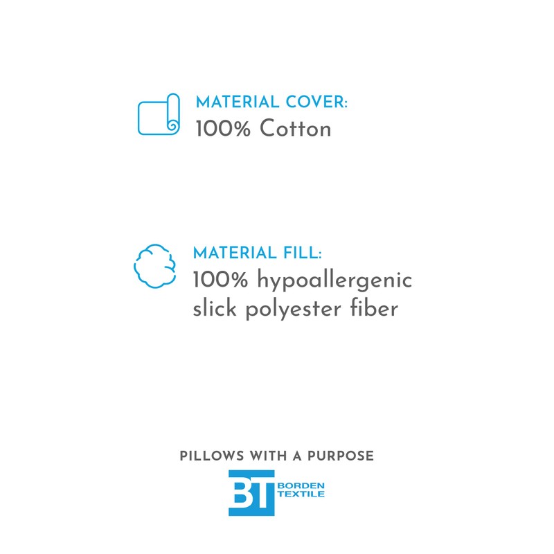- The soft cover is cotton with a hypoallergenic blown slick polyester fiber fill.