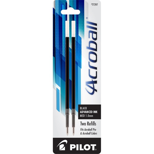 PILOT Acroball Advanced Ink Refill For Retractable Pens, Medium Point, Black Ink, 2-Pack (77297)
