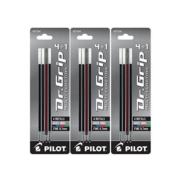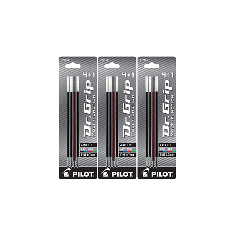 PILOT Dr. Grip 4+1 Multi-Function Ballpoint Ink Refills, Fine Point, Black/Red/Blue/Green Inks, 3 Pack