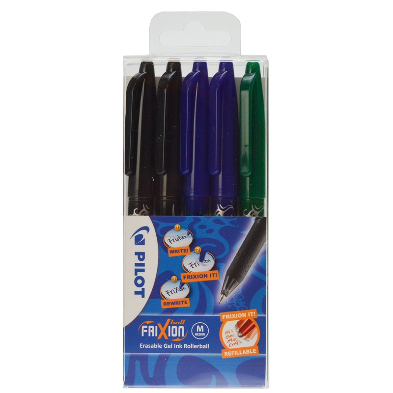 - Pilot Frixion Ball 0.7mm Erasable Rollerball Pen Set (2 Black/ 2 Blue/ 1 Green)