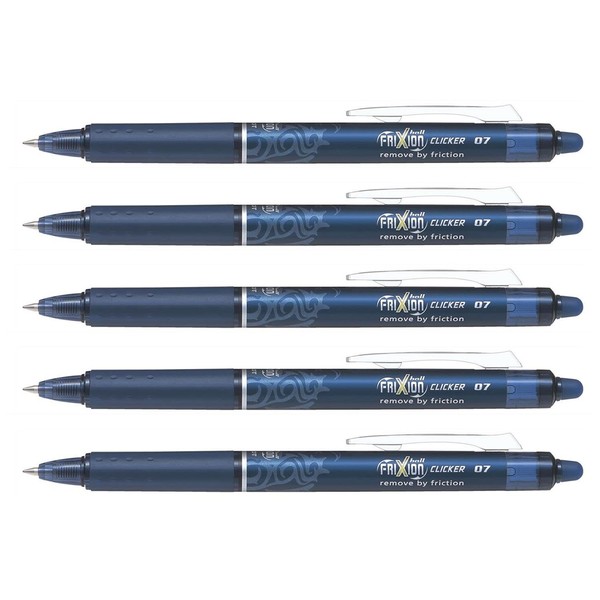 PILOT Frixion Ball Click 0.7 Rollerball Pens Pack of 5 Blue Black