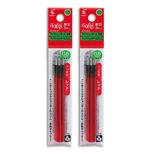 Pilot FriXion Ball Multicolor Refill 0.5mm, Extra Fine Point, 3 Refills, Red LFBTRF30EFR x 2, Pack of 2