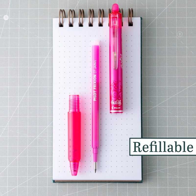 - Refillable & Quick Drying: Save money and reduce waste by refilling your pen with Pilot FriXion refills (sold separately); Quick drying ink helps prevent smudges and smears; Includes black, blue, red, turquoise, purple, navy, pink and green pens