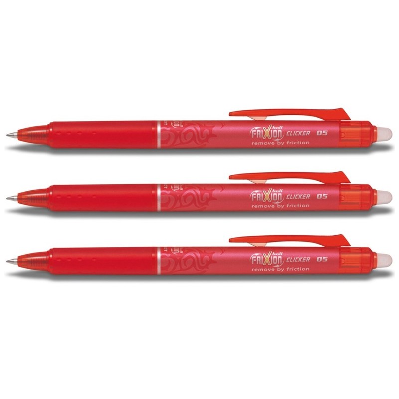 Pilot Frixion Clicker Pen 0.5 (Fine) Set of 3, Red