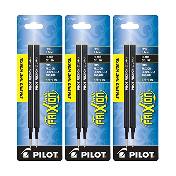 PILOT FriXion Gel Ink Refills for Erasable Pens, Fine Point, Black Ink, 6-Pack (14718)
