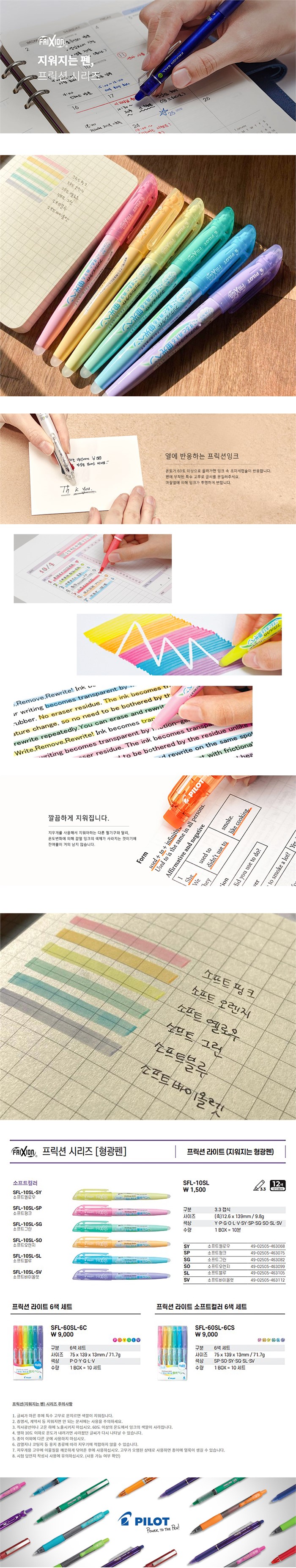 Pilot Frixion Light Erasable Highlighter 6-Color Set / 파일롯트프릭션 라이트 지워지는 형광펜 6색 세트