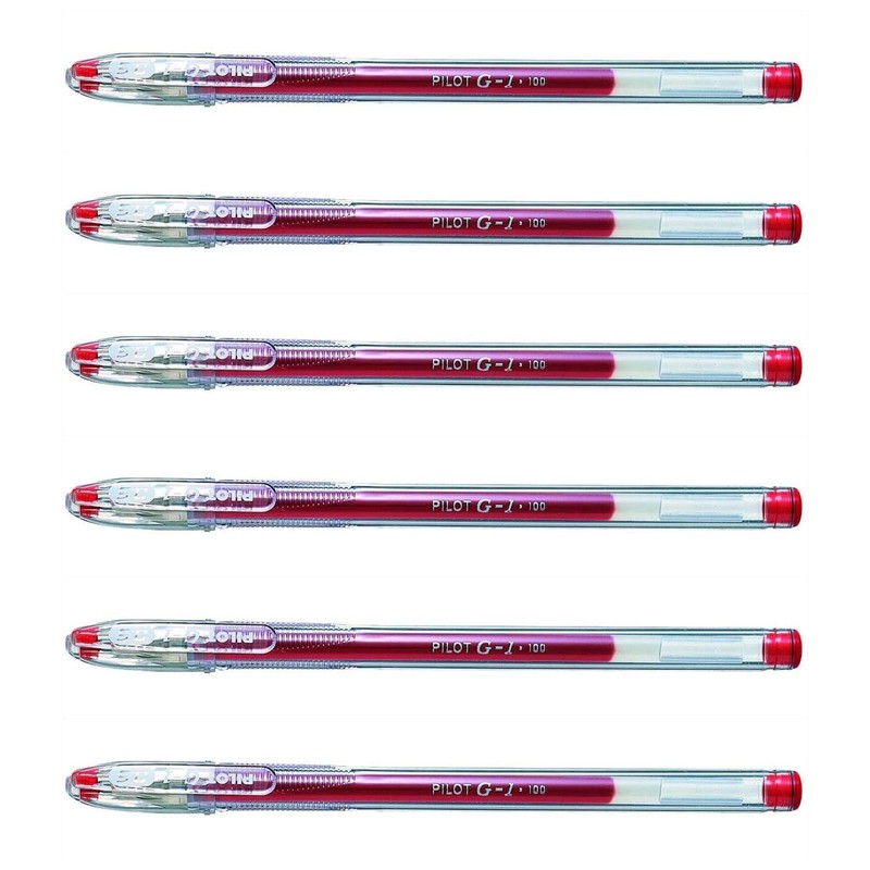 Pilot G-1 Gel Ink Pen Fine 0.5mm Line 0.3mm Red (Pack of 6)