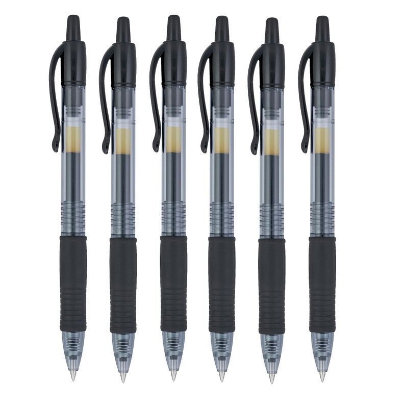 Pilot G2 07 Black Fine Retractable Gel Ink Pen Rollerball 0.7mm Nib Tip 0.39mm Line Width Refillable BL-G2-7 (6)