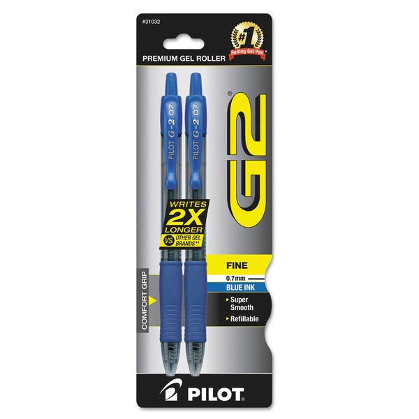 Pilot G2 Gel Roller Ball Pen, Blue, 0.7mm, 2 Pack