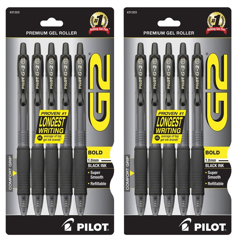 - America's #1 selling Gel Ink Pen Dynamic Gel Ink Formula that's smooth writing and smear-proof Contoured rubber grip for writing comfort Retractable and refillable with G2 refills 5-pack of pens with bold point black ink