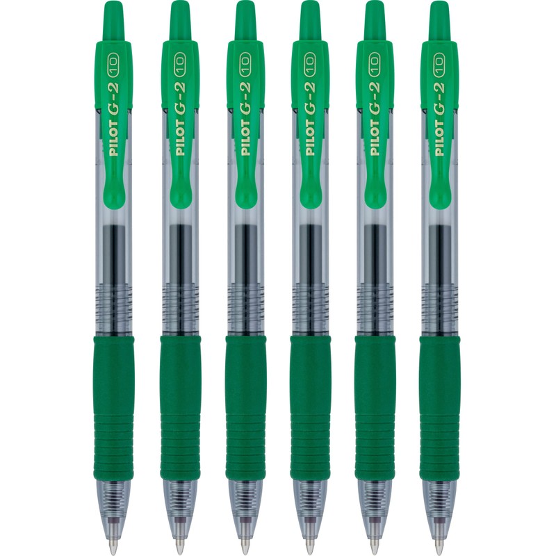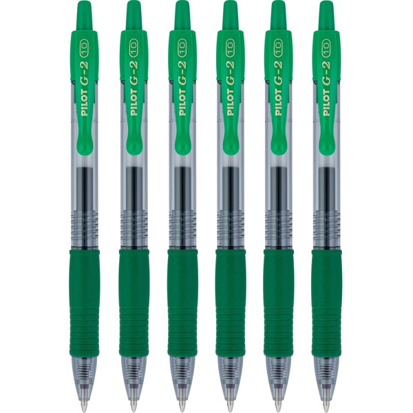 Pilot G2 Retractable Rollerball Gel Pens, Bold Point, 1.0mm, Green Ink, 6 Count