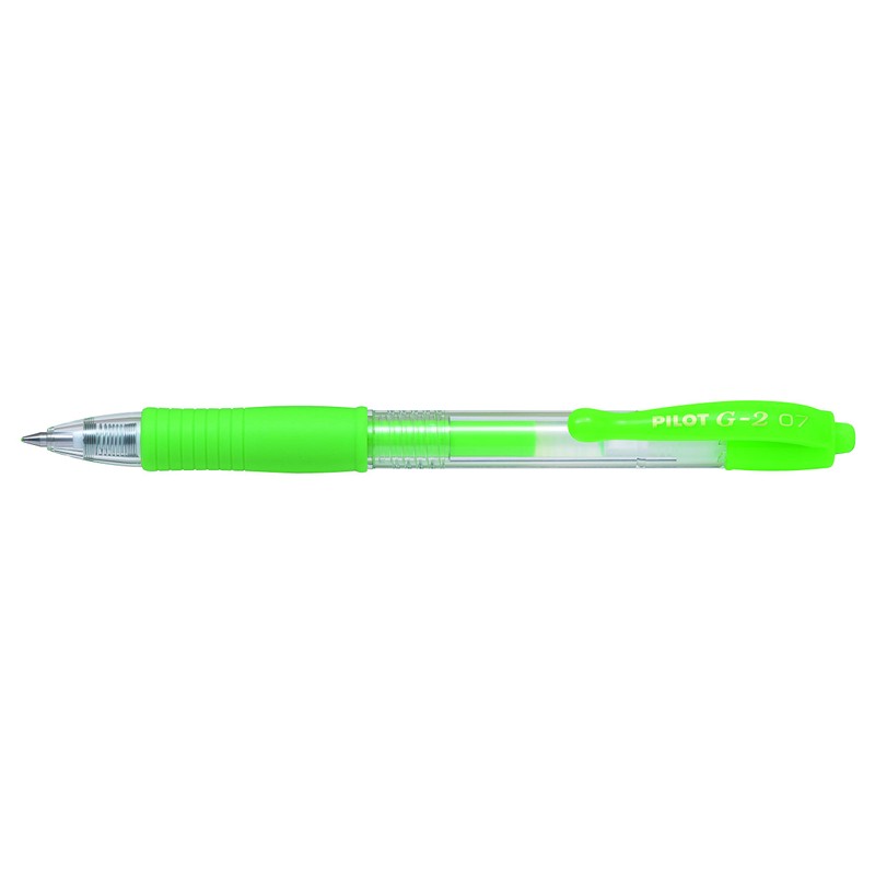 PILOT G207 Retractable Gel Rollerball 0.7mm Tip- Neon Green, Box of 12