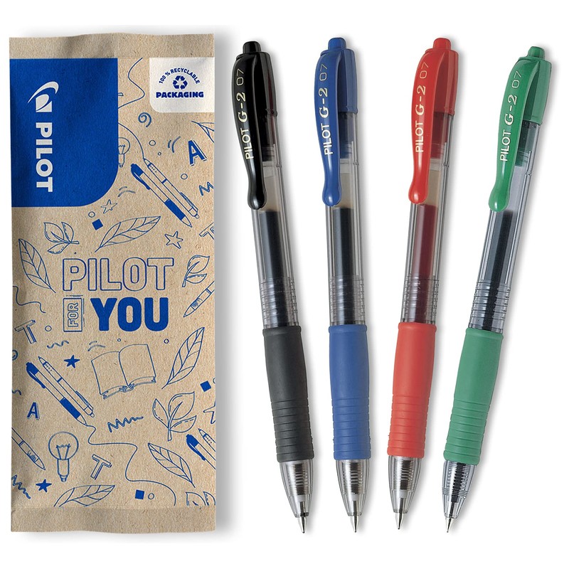 Pilot G207 Retractable Gel Rollerball, Black/Blue/Red/Green, 4 Count (Pack of 1)