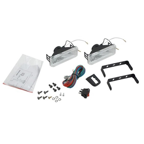 • Kit includes: 2 halogen lamps, complete wiring harness kit, mounting brackets with screws, and installation instruction