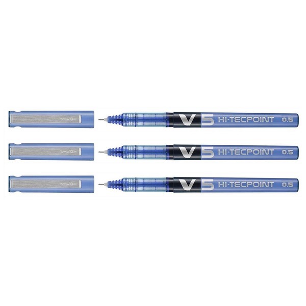 Pilot Hi-Tecpoint V5 Liquid Ink Rollerball Pen Fine Point Blue (Pack of 3)