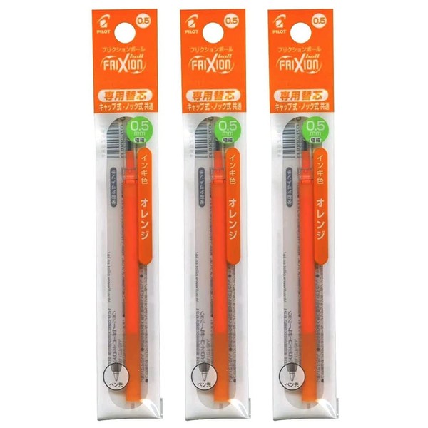 Pilot LFBKRF12EFO FriXion Ball Refill, 0.5mm, Orange, 1 Pack x 3 Pack Set