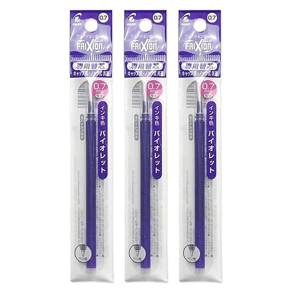 Pilot LFBKRF12FV FriXion Ball Dedicated Refill, 0.7mm, Violet, 1 Pack x 3 Pack Set
