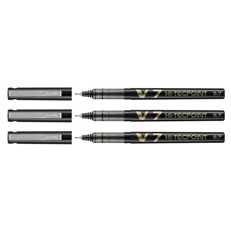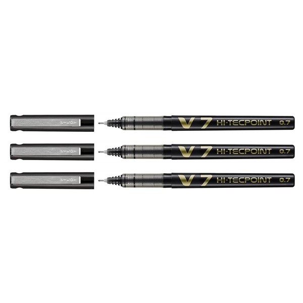 Pilot Pack of 3 Hi-Tecpoint V7 Rollerball Pens, Liquid Ink, Medium Tip, Black