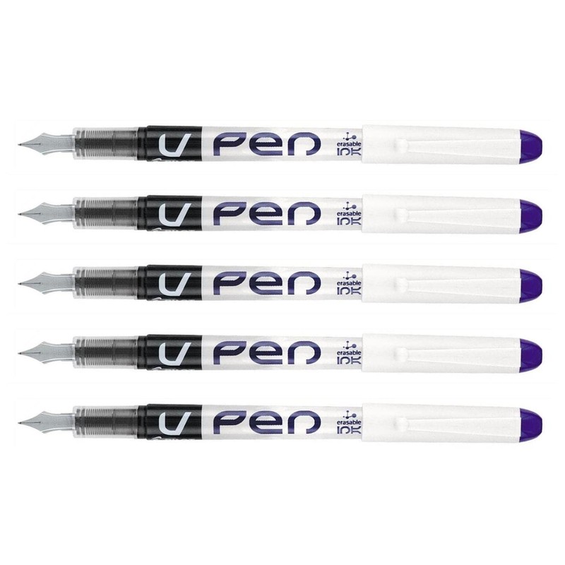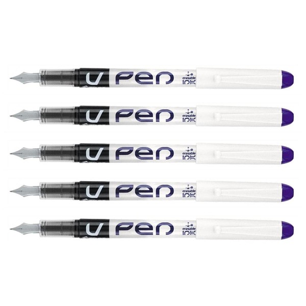 PILOT Pack of 5 Disposable Fountain Pens V-Pen Erasable Medium Nib Purple