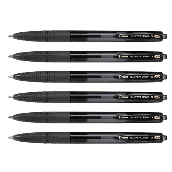 Pilot Pack of 6 Super Grip G Retractable Ballpoint Pens Extra Large Nib Black