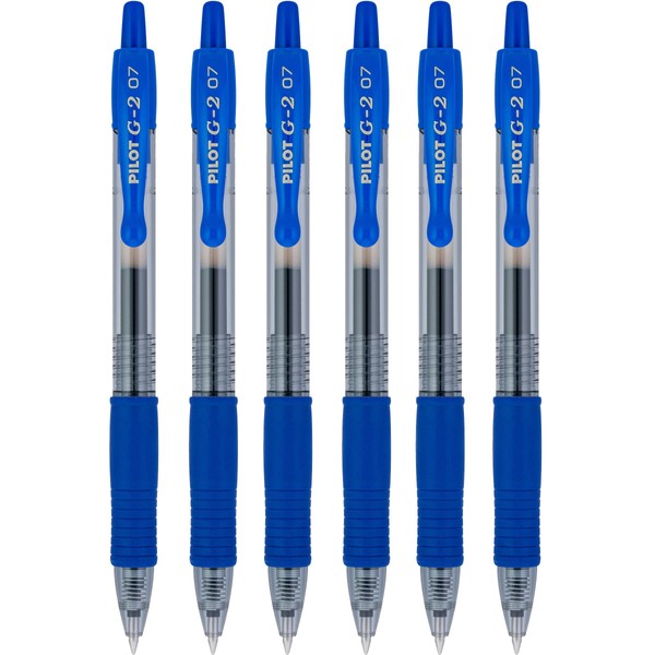 Pilot Pen Pilot G2 07 blau fein Retractable Gel Ink Pen Tintenroller 0,7 mm Feder Spitze 0,39 mm Line Breite nachfüllbar bl-g2–7 (6er Pack, blau)