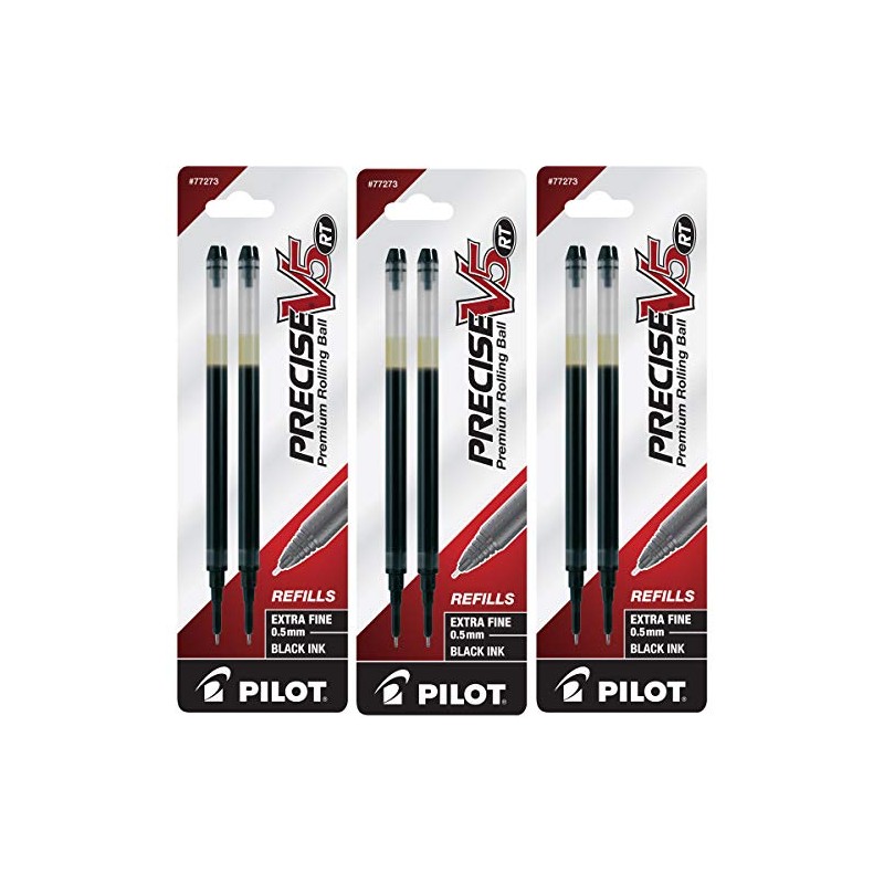 Pilot, Precise V5 RT Liquid Ink Refills, Extra Fine Point 0.5 mm, Black, Pack of 6