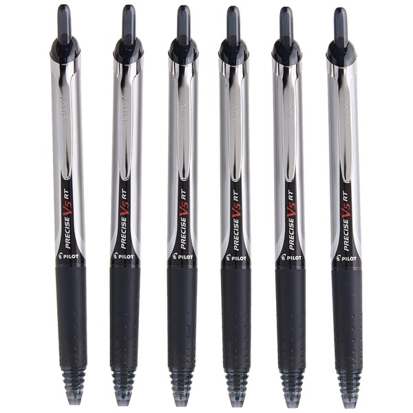 PILOT Precise V5 RT Refillable & Retractable Liquid Ink Rolling Ball Pens, Extra Fine Point (0.5mm) Black Ink, 6-Pack (13613)