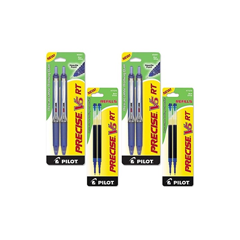 Pilot Precise V5 RT Retractable Rolling Ball Pens, Extra Fine Point, Black Ink, 6 Pens (4-Pack/Bundle, Blue)