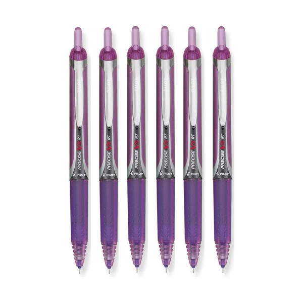 Pilot Precise V5 RT Retractable Rolling Ball Pens, Extra Fine Point, Purple Ink, 6 Pens