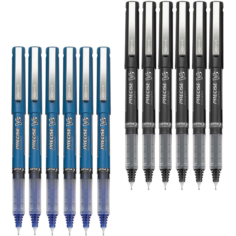 Pilot Precise V5 Stick Rolling Ball Pens, Extra Fine Point, 6 Black, 6 Blue (Dozen Combo Pack)