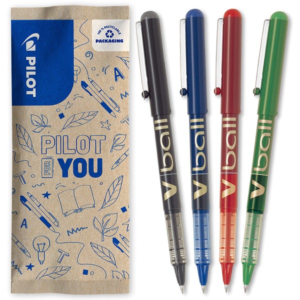 Pilot - Rollerball Pen 4V-ball 07 - Liquid Ink for Smooth and Accurate Writing - Quick Drying - Black, Blue, Red, Green - Medium Tip