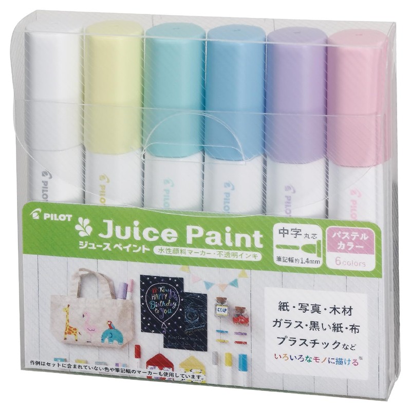 Pilot SJP-120MN-6CP Juice Paint, Medium Point, Round Point, Pastel Colors, Set of 6 Colors