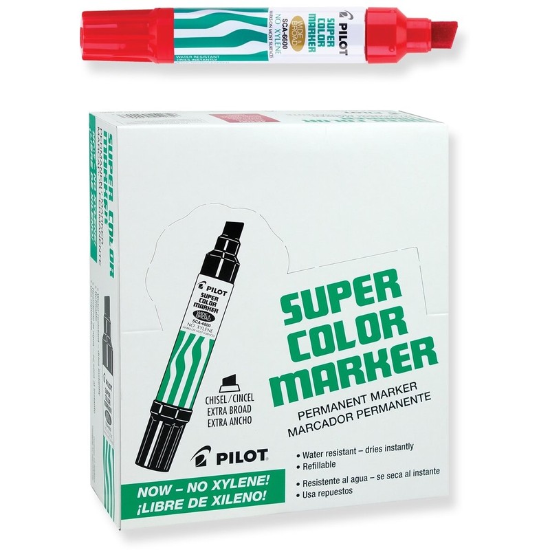 Pilot Super Color Jumbo Permanent Markers, Extra Wide Chisel Point, Xylene-Free, Red Ink, Dozen Box (45300)