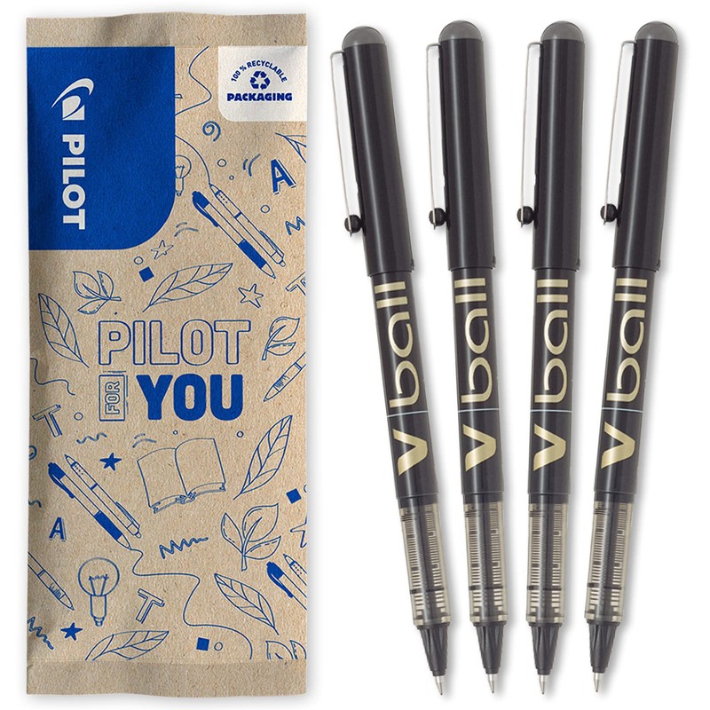 Pilot V-ball 07 Liquid Ink Rollerball Pen - Medium Nib - Smooth and Accurate Writing, Quick Drying, Vibrant Ink - No Leaking - Medium Tip - Black (Pack of 4)