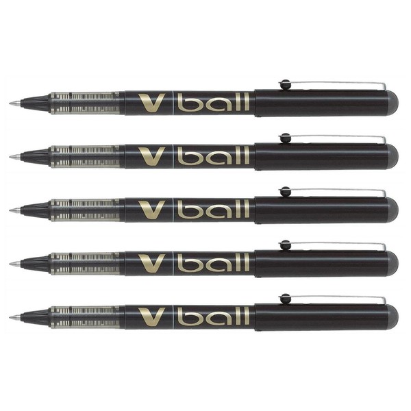 Pilot V-Ball VB7 Liquid Ink Rollerball Pen - Medium Metal Tip - Black (Pack of 5)