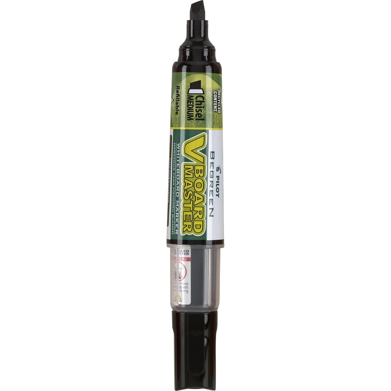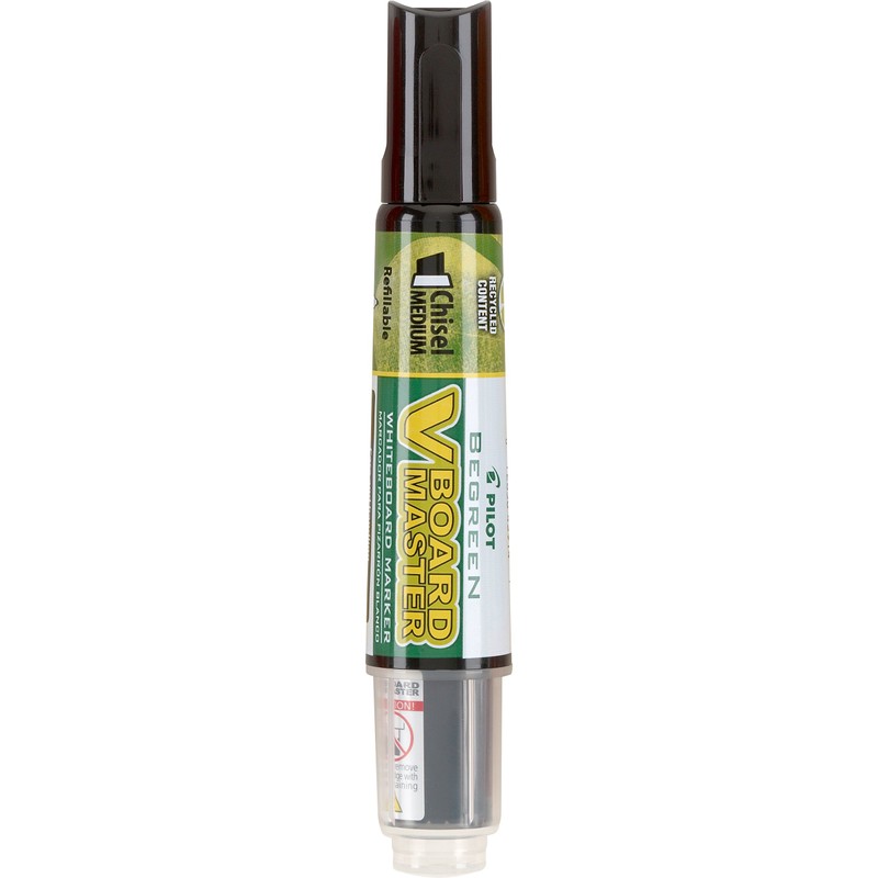 PILOT V Board Master BeGreen Refillable Dry-Erase Markers, Chisel Tip, Black Ink, 12 Count