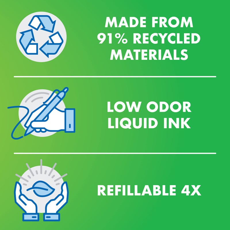 Recycled V board master dry erase markers are refillable up to 4 times! the V board master whiteboard marker contains 91% recycled content, offers brilliant ink colors and erases cleanly.