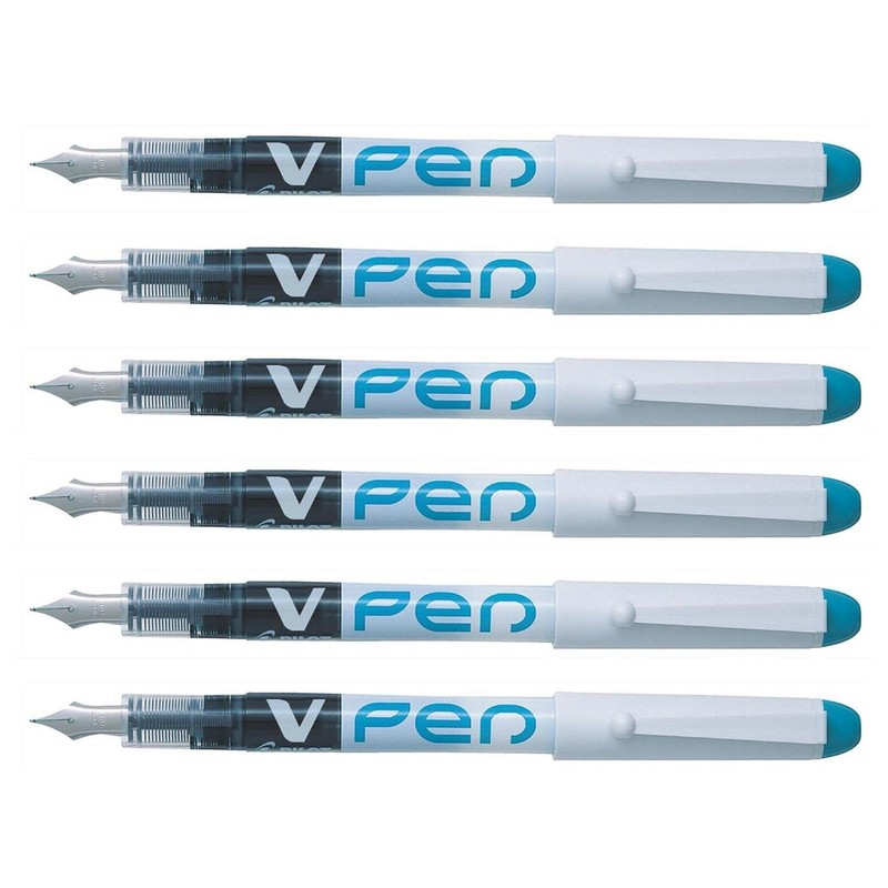 Pilot V-Pen Disposable Fountain Pens, Turquoise, Set of 6