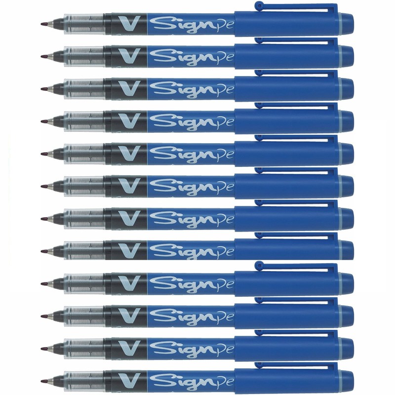 Pilot V-Sign Bold 2.0mm Tip Width 0.6mm Line Width Fineliner Pen (Blue) Pack of 12 Pens
