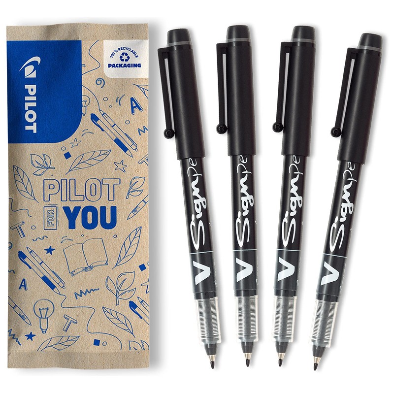 PILOT V-Sign Pen Fibre-Tip Pen (Black), Pack of 4