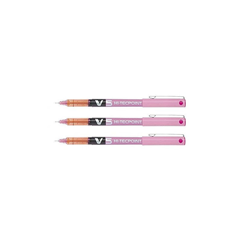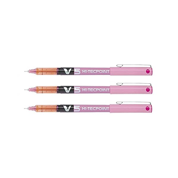 Pilot V5 Hi-Tecpoint Liquid Ink Rollerball Pen Pack of 3 Cutting Paste Pink
