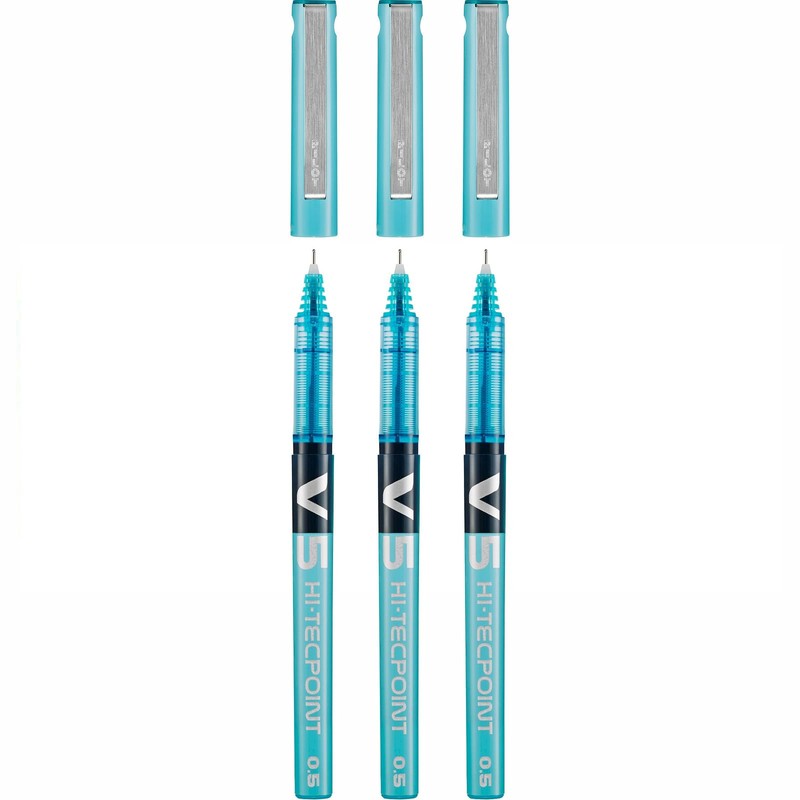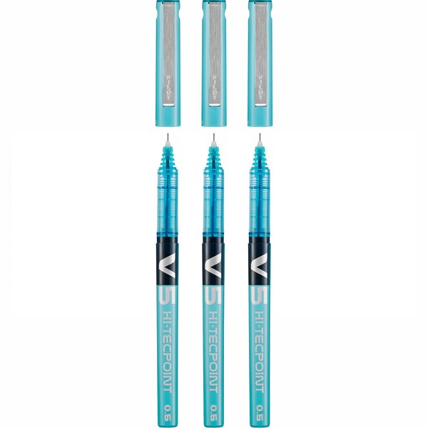 Pilot V5 Hi-Tecpoint Liquid Ink Rollerball Pen Pack of 3 Thin Turquoise Paste