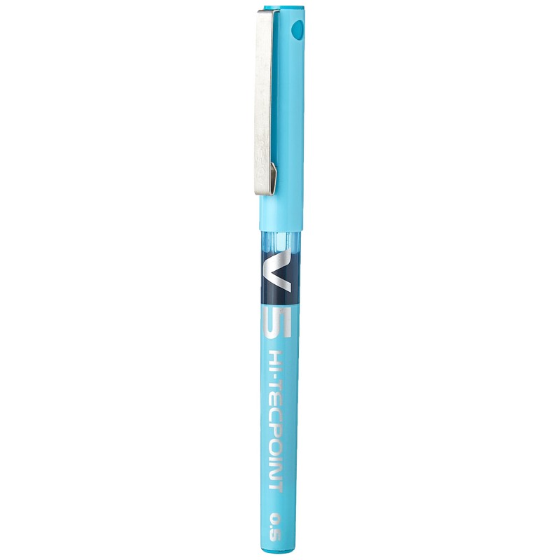 Pilot -V5 rollerball pen with liquid ink, 0.5 mm tip (single pen) — black single bed light blue